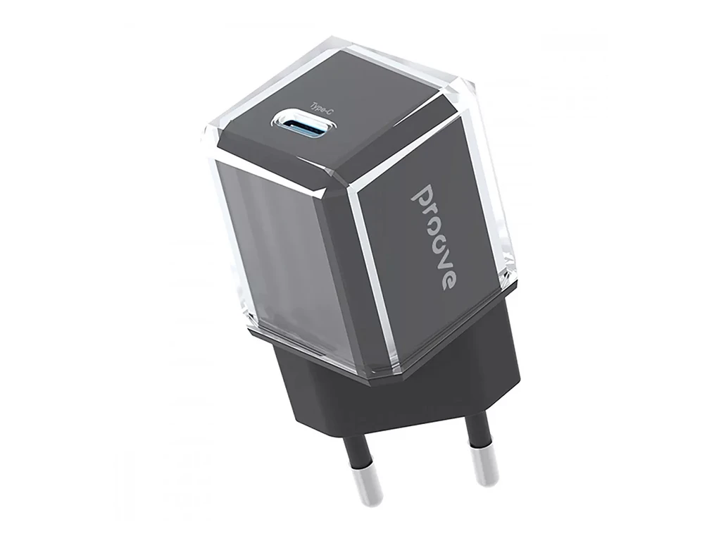 - Proove Pure GaN оснащений портом Type-C з підтримкою швидкої зарядки, він ідеально підходить для ефективного живлення гаджетів, таких як смартфони чи павербанки.