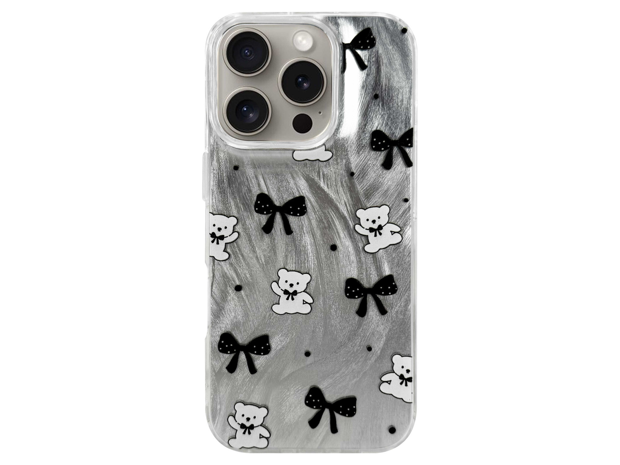 Накладка Paint Stroke Teddy Bears and Bows iPhone 16 Pro Max silver