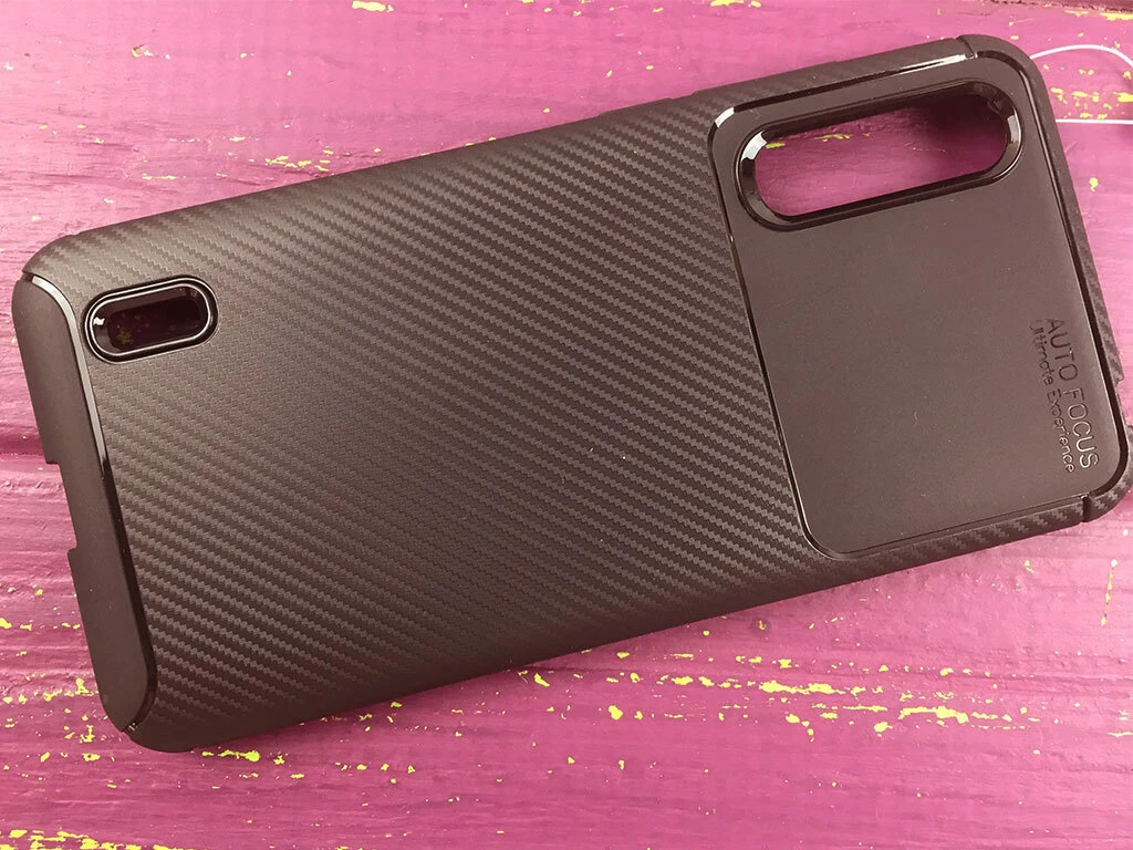 - Текстурированная поверхность под карбон придает современный вид, а приподнятые бортики вокруг экрана и камеры обеспечивают дополнительную защиту.
