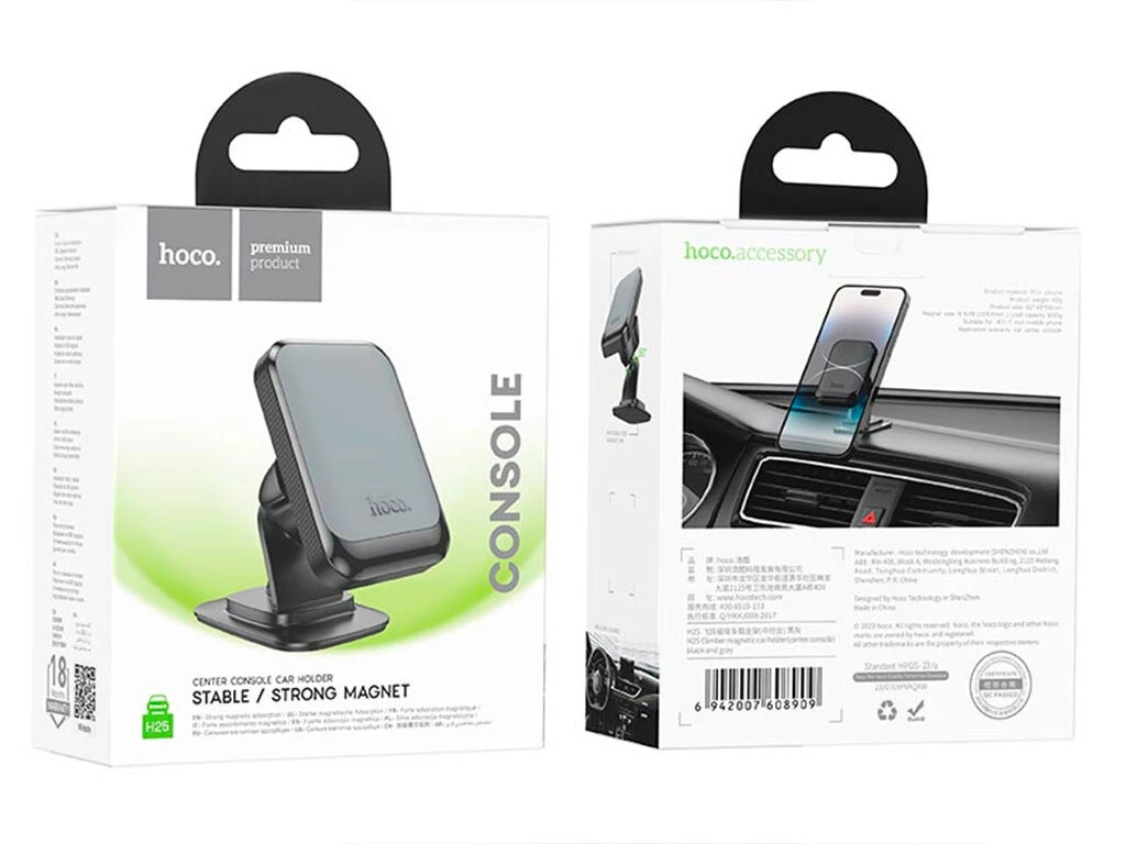Автомобильный держатель Hoco H25 – это современное решение для комфортного использования смартфона в дороге. Прочный, но элегантный, он легко крепится на центральную консоль автомобиля, обеспечивая надежное удержание телефона благодаря мощной магнитной пластине. Совместимость с устройствами с диагональю экрана от 4,7 до 7 дюймов делает его универсальным аксессуаром. Инновационный дизайн с прочным шарниром позволяет беспрепятственно регулировать угол наклона, обеспечивая оптимальный обзор экрана и повышая безопасность вождения. Изготовленный из качественного пластика, Hoco H25 гарантирует долговечность и стильный внешний вид.
