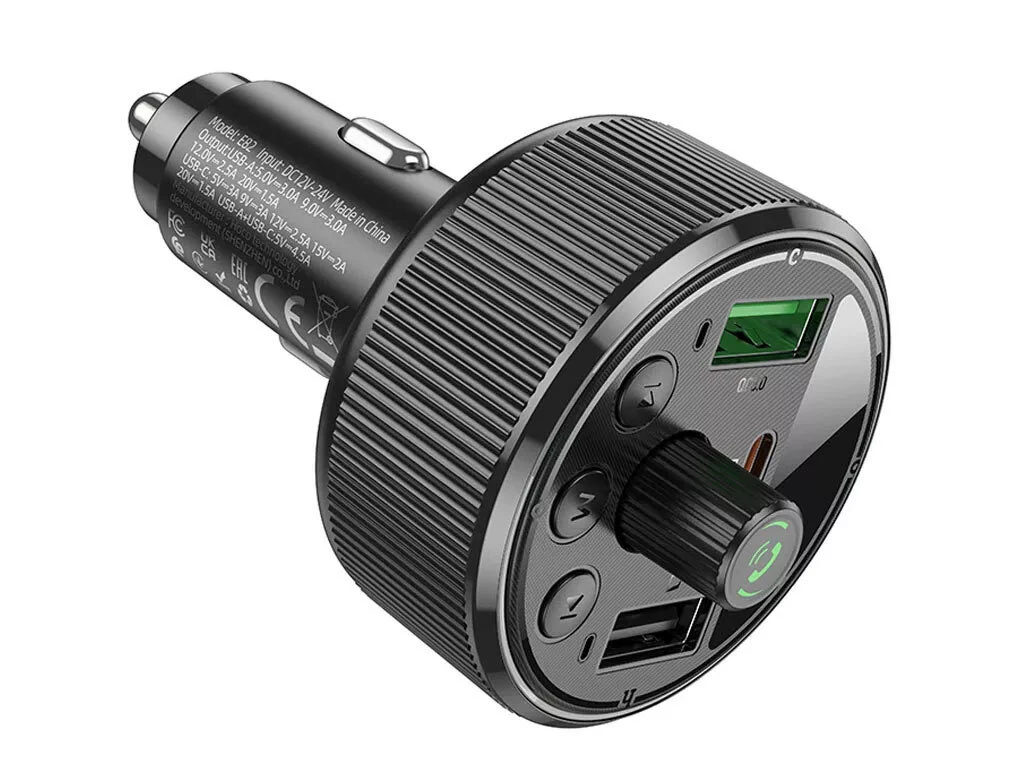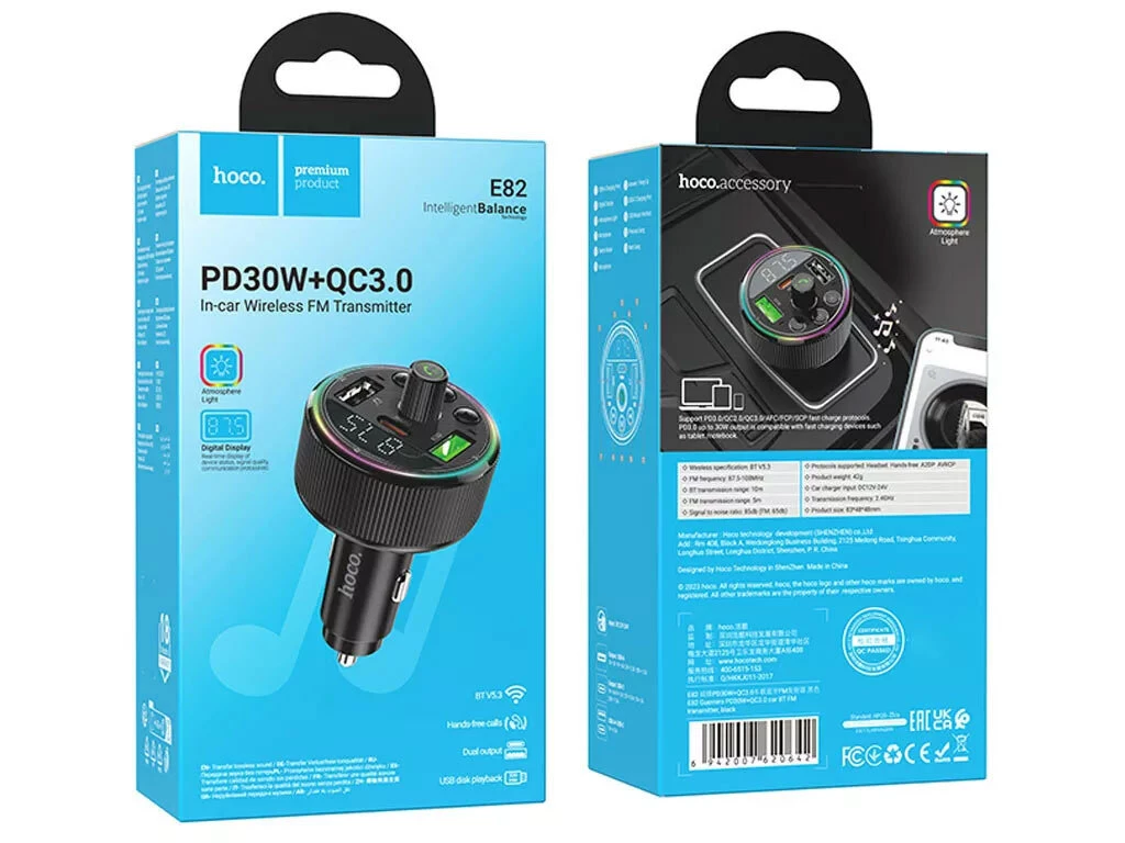 Поддержка Bluetooth и FM: Адаптер HOCO E82 обеспечивает беспроводное подключение для прослушивания музыки через Bluetooth, а также возможность воспроизведения FM-радио.