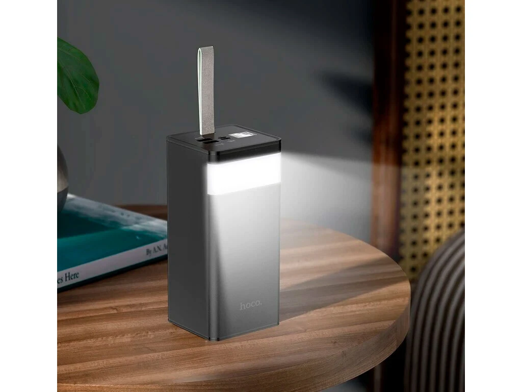 Портативная батарея большой емкости, оснащенная 3 выходными разъемами, цифровым дисплеем и светодиодной лампой.