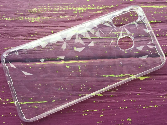- Прозрачный чехол, выполненный в стиле призмы, который очень красиво преломляет лучи солнца.
