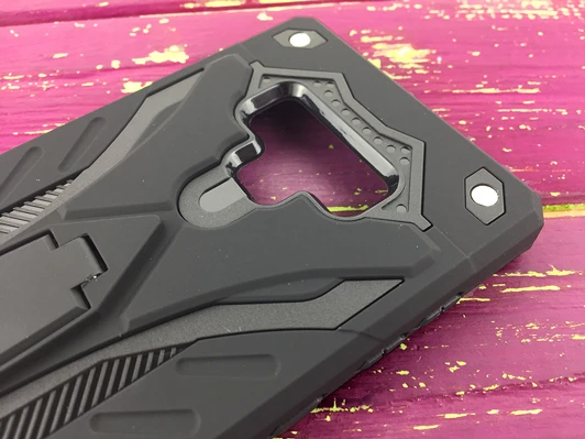 - Противоударный прочный чехол с комбинацией резины и пластика.